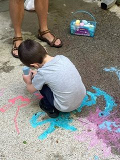 The kids went CRAZY for squirting puffy paint onto the patio. It’s not everyday you get free reign to make a mess and they all went HAM. With a little bit of finesse we could have made beautiful designs and images, but this activity was not about finesse. It was about mess and squirting as much paint onto the ground as possible, mixing colors, and laughing our silly little booty butts off.