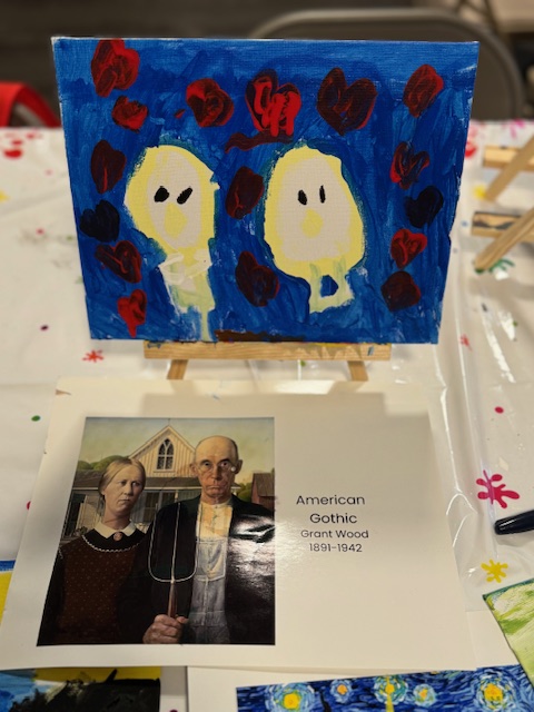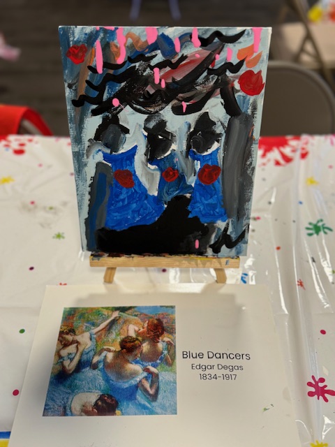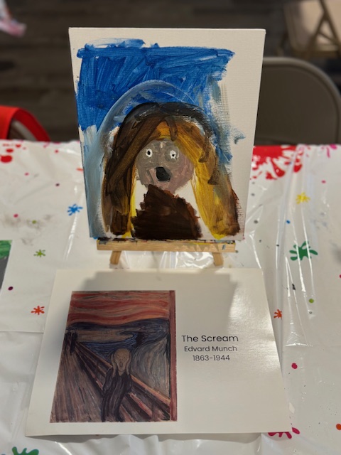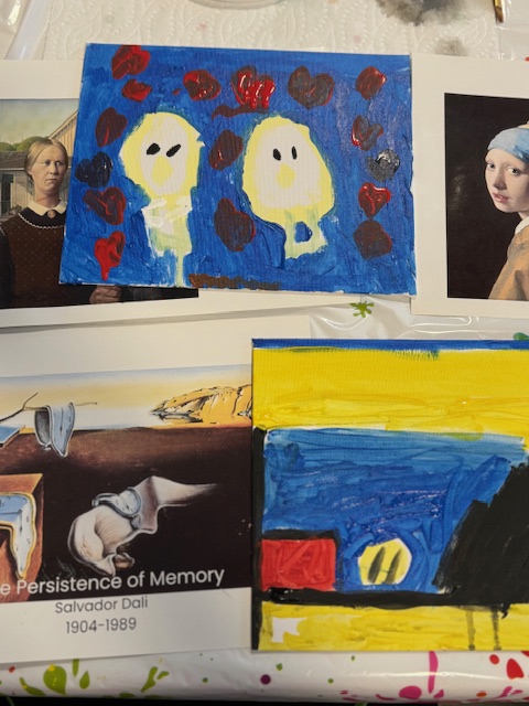 After each painting made its way around the room, with each girl adding her own flair, the masterpieces were compared. We matched the newly created art to the original inspiration pieces—and surprisingly, the girls weren’t too far off!
